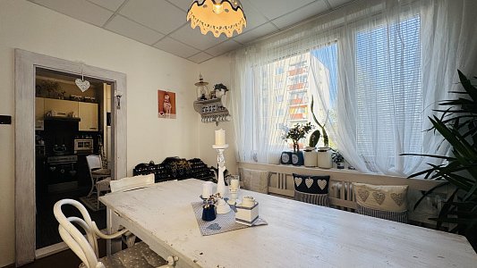 Na radiátorech jsou odpočtová měřidla, termostatické hlavice. Okna jsou plastová včetně žaluzií. Měsíční předpis plateb je 5065,- Kč/měsíc + elektrika. K bytu náleží sklep 4m2.