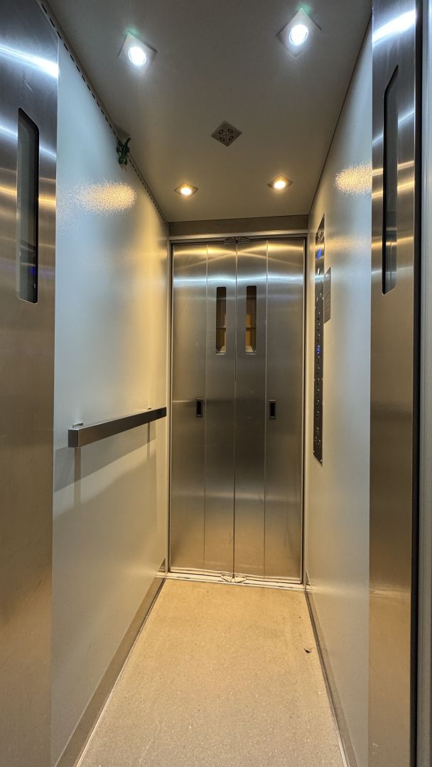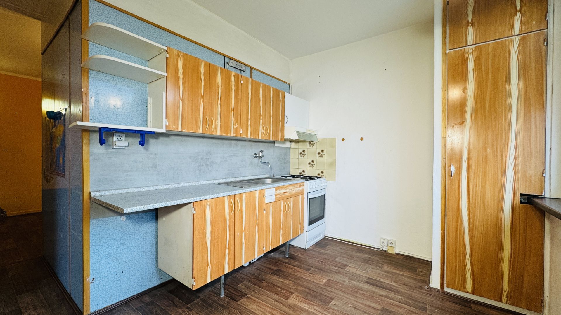 V bytovém jádře zůstavá kuchyňská linka včetně sporáku. Na radiátorech jsou odpočtová měřidla termostatické hlavice. Výtah je nový bezbariérový