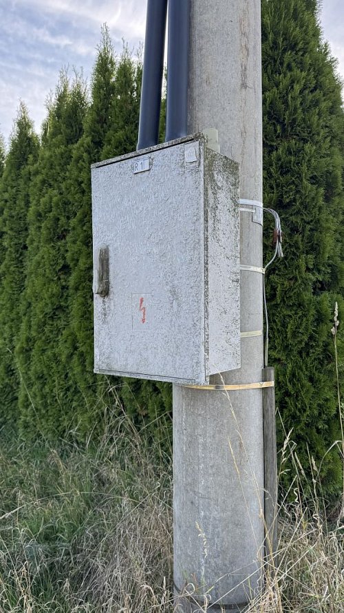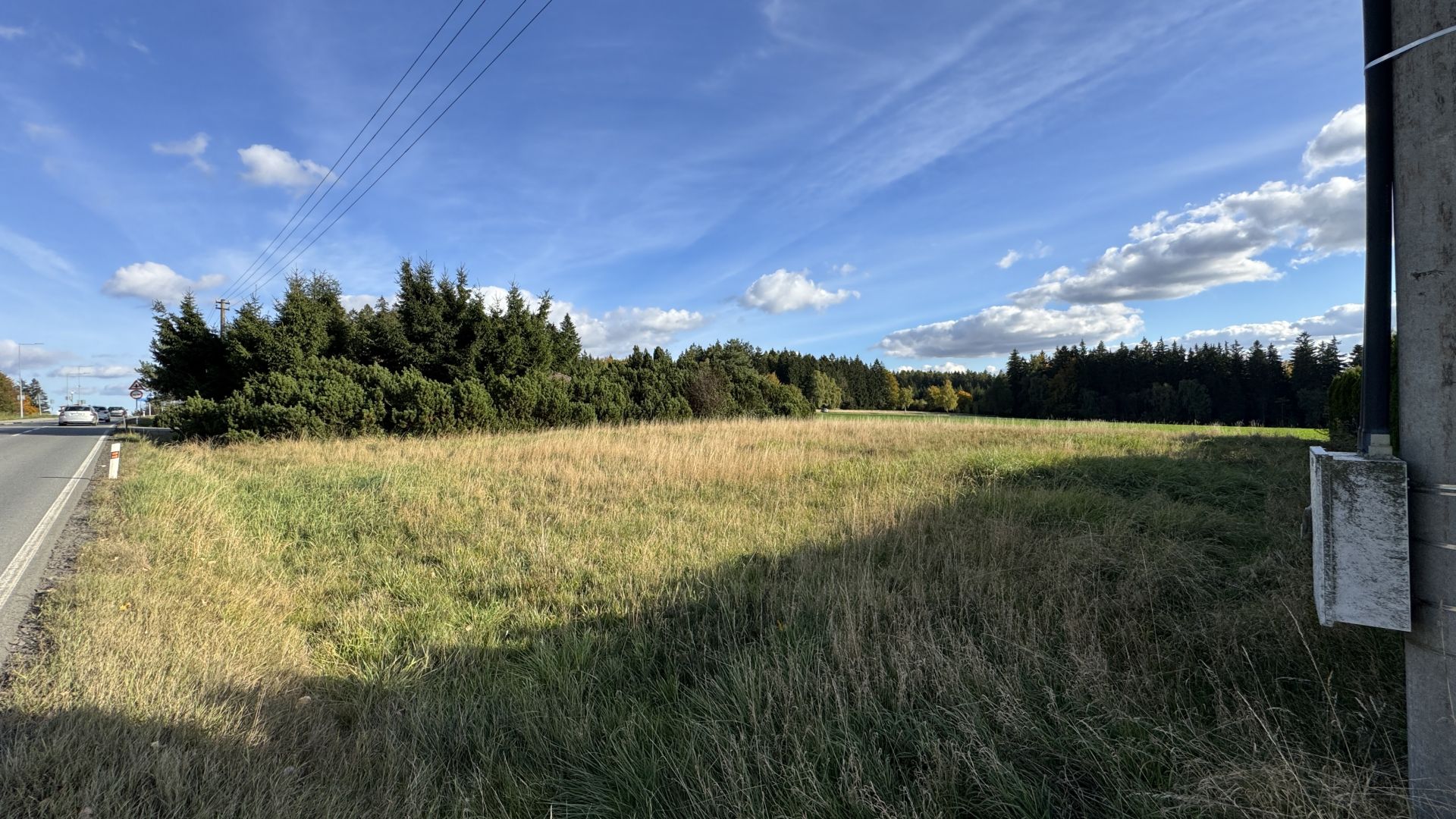 Sítě: voda vede podél hranice s asfaltovou komunikací, je nutné vybudovat jímku pro elektroměr, elektrika je ve sloupu na, které je zřízeno věcné břemeno.