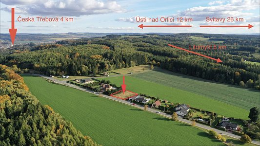 Parcela není oplocena, dostupnost je z asfaltové komunikace Česká Třebová - Litomyšl. Perfektní dostupnost do České Třebové 4 km, Ústí nad Orlicí 12 km, Litomyšle 8km, a Svitav 26km. Zastávka autobusu cca 150m.